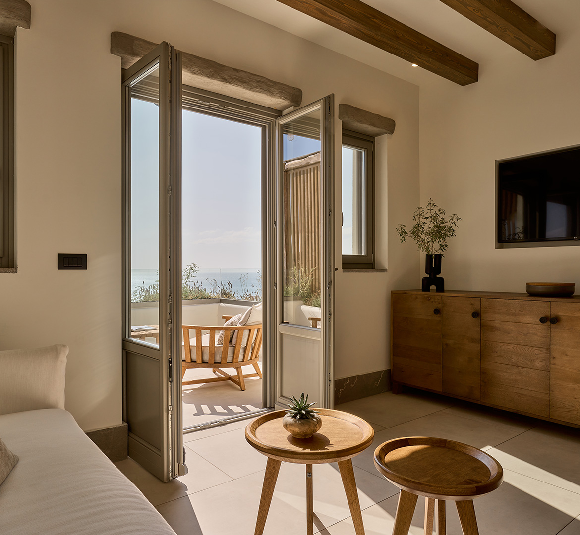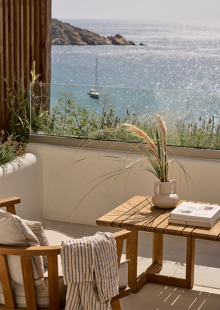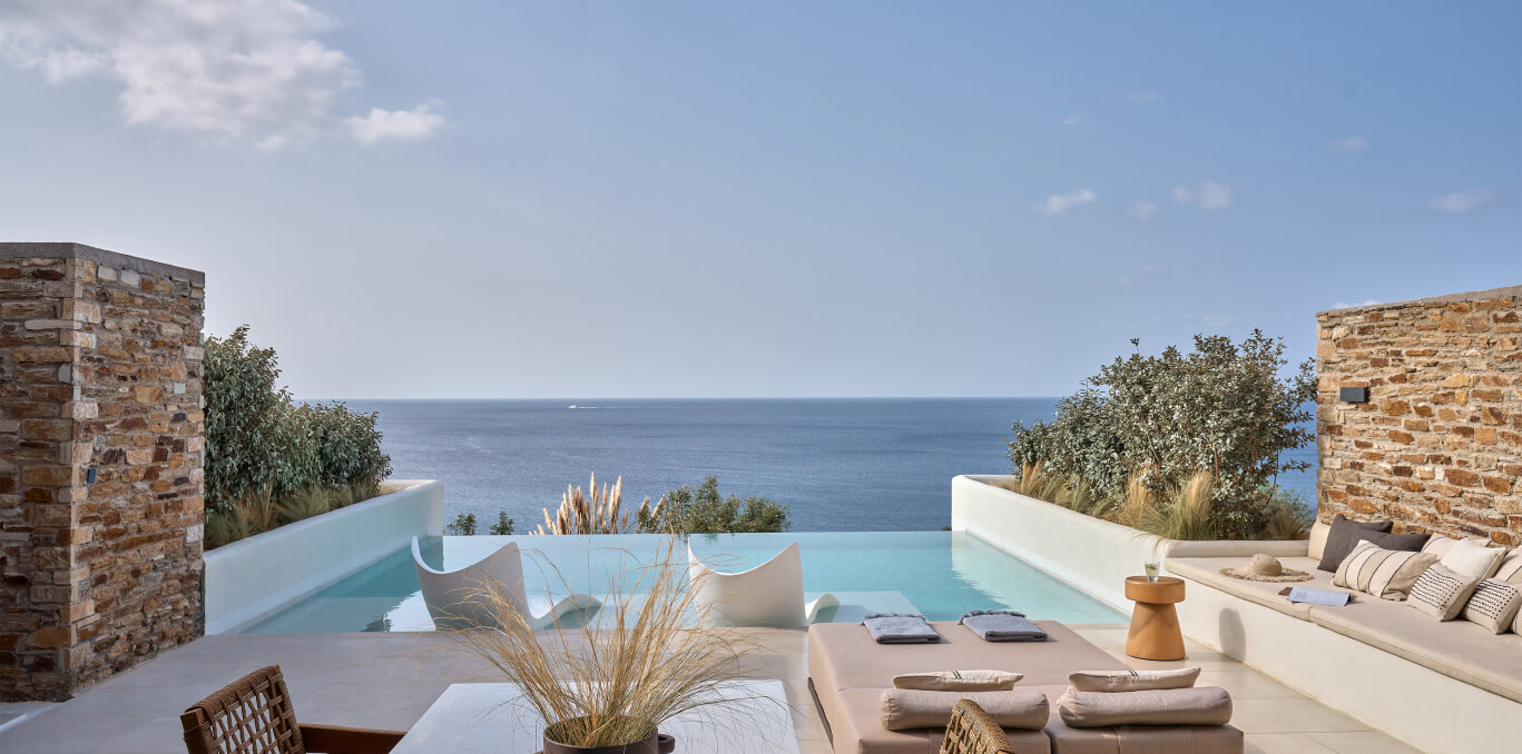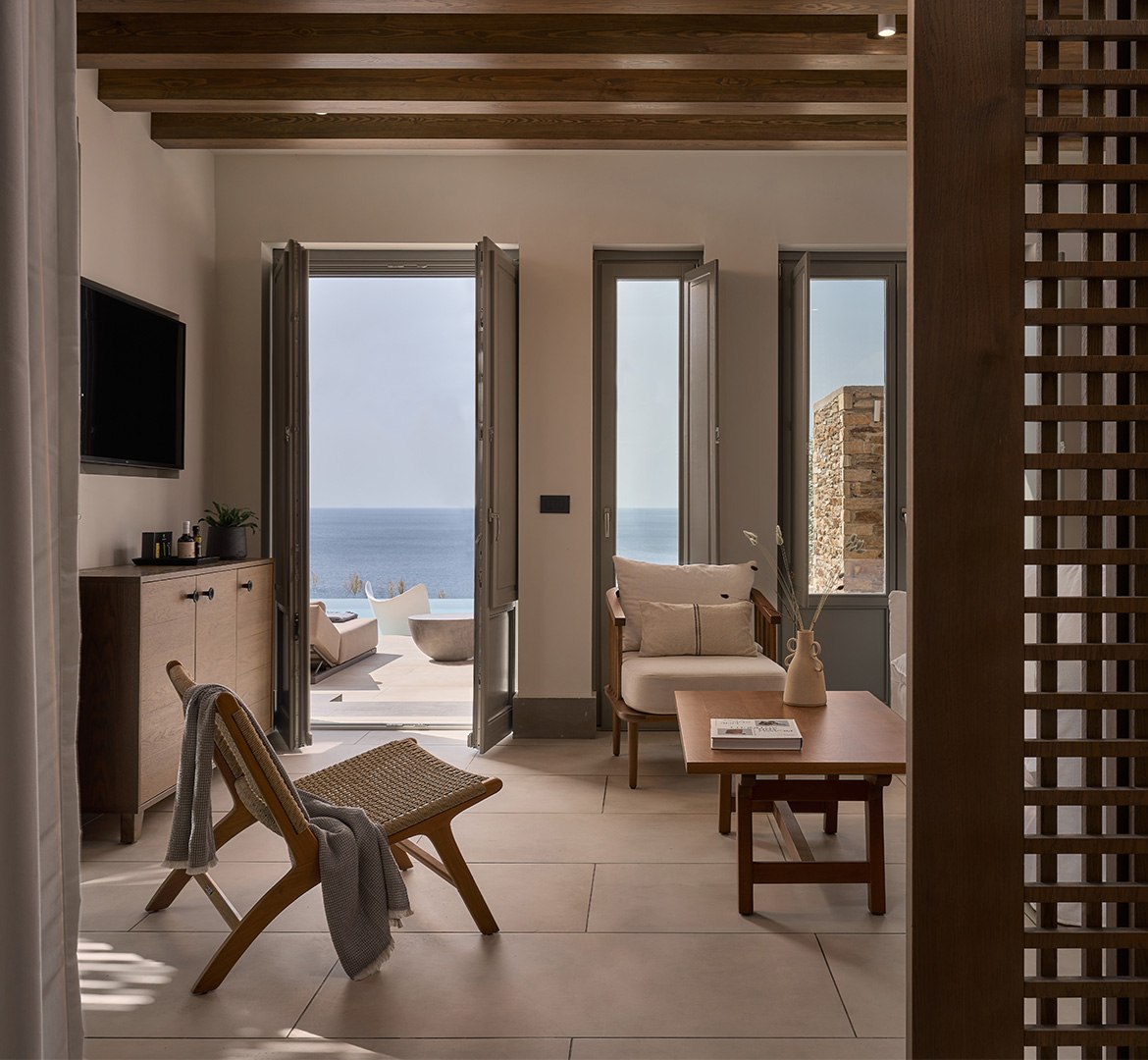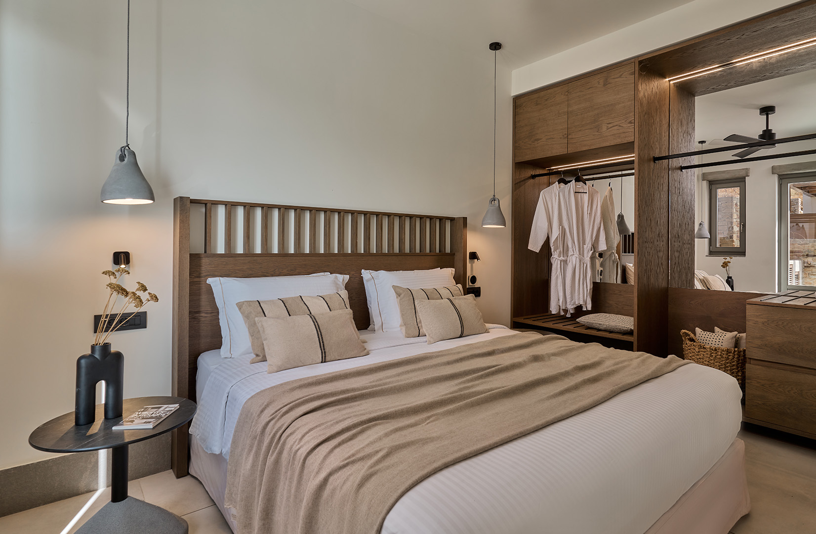 Outdoor Edge Living Project lives on the island of Ios in the Cyclades. The name of the island is said to come either from the characteristic flowers Ia, or from the Phoenician word Ios, which means pile of stones. The design is adapted, harmonized and at the same time inspired by the plasticity and austerity of the Cycladic architecture. The aim of the project is its integration in the special place and the emphasis on outdoor living. The twelve suites are located based on their optimal orientation to the unobstructed view of the Aegean Sea. The main tools of the synthesis are the light, the shadow, the Cycladic white, the use of natural materials and contrasts, in order to provide a modern and yet calm and intimate environment with a high degree of privacy during the stay. The historicity of Cycladic culture is reflected in interior design and attributes to it architectural forms, such as arches and forms inspired by cycladic art.